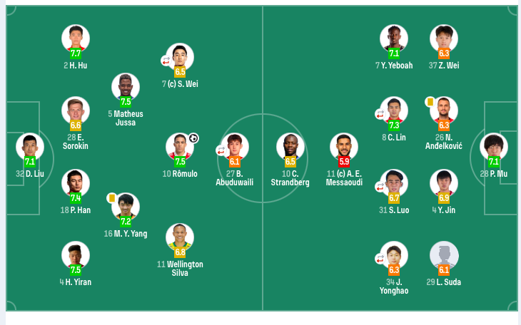 后腰:5-马修斯·茹萨(F)、16-杨明洋;